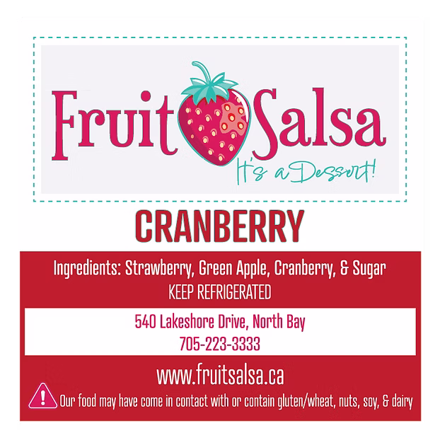 Tart and tangy perfection! Our Cranberry Fruit Salsa brings together zingy cranberries with strawberries and green apples. It’s a Dessert! Handmade in small batches in North Bay, Ontario. Especially popular during the holidays! Keep refrigerated.