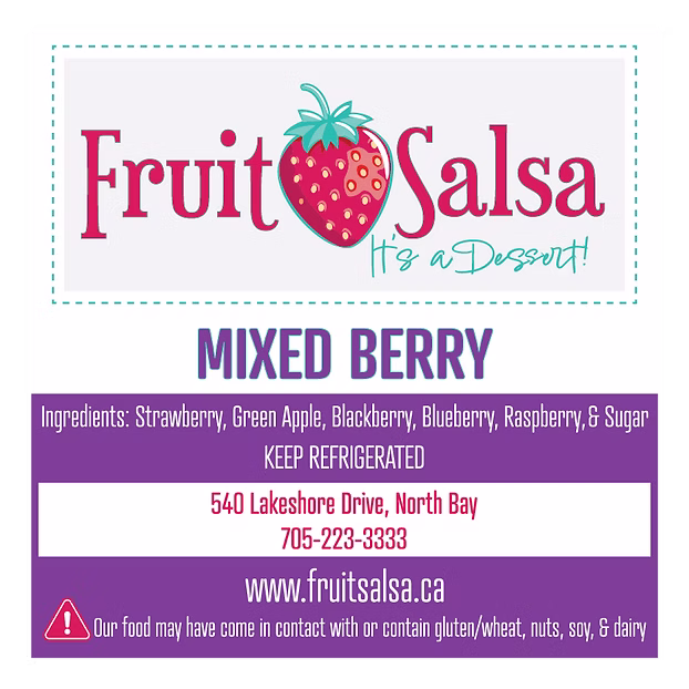 The best of all worlds! Our Mixed Berry Fruit Salsa combines strawberries, raspberries, blueberries, and green apples for an explosion of berry flavors. It’s a Dessert! Handmade in small batches in beautiful Northern Ontario. A customer favorite! Keep refrigerated.