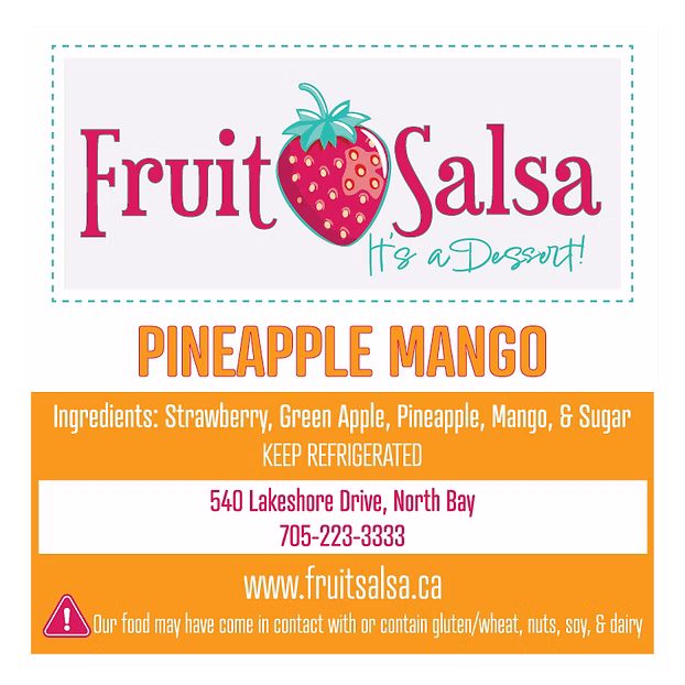 Double tropical delight! Our Pineapple Mango Fruit Salsa combines two exotic fruits with strawberries and green apples. It’s a Dessert! Crafted in small batches in North Bay, Ontario. A taste of the tropics any time of year! Keep refrigerated.